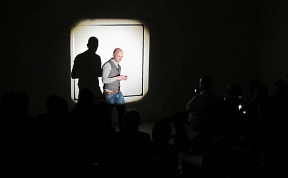 For this special presentation French artist Pierre Leguillon showed 350 slides that were used in performance lectures by New York abstract painter Ad Reinhardt (1913–1967). Leguillon then discussed Reinhardt with Conceptual Art pioneer Seth Siegelaub, who as an art dealer in New York in the 1960s knew Reinhardt and shared with him an interest in Islamic art.