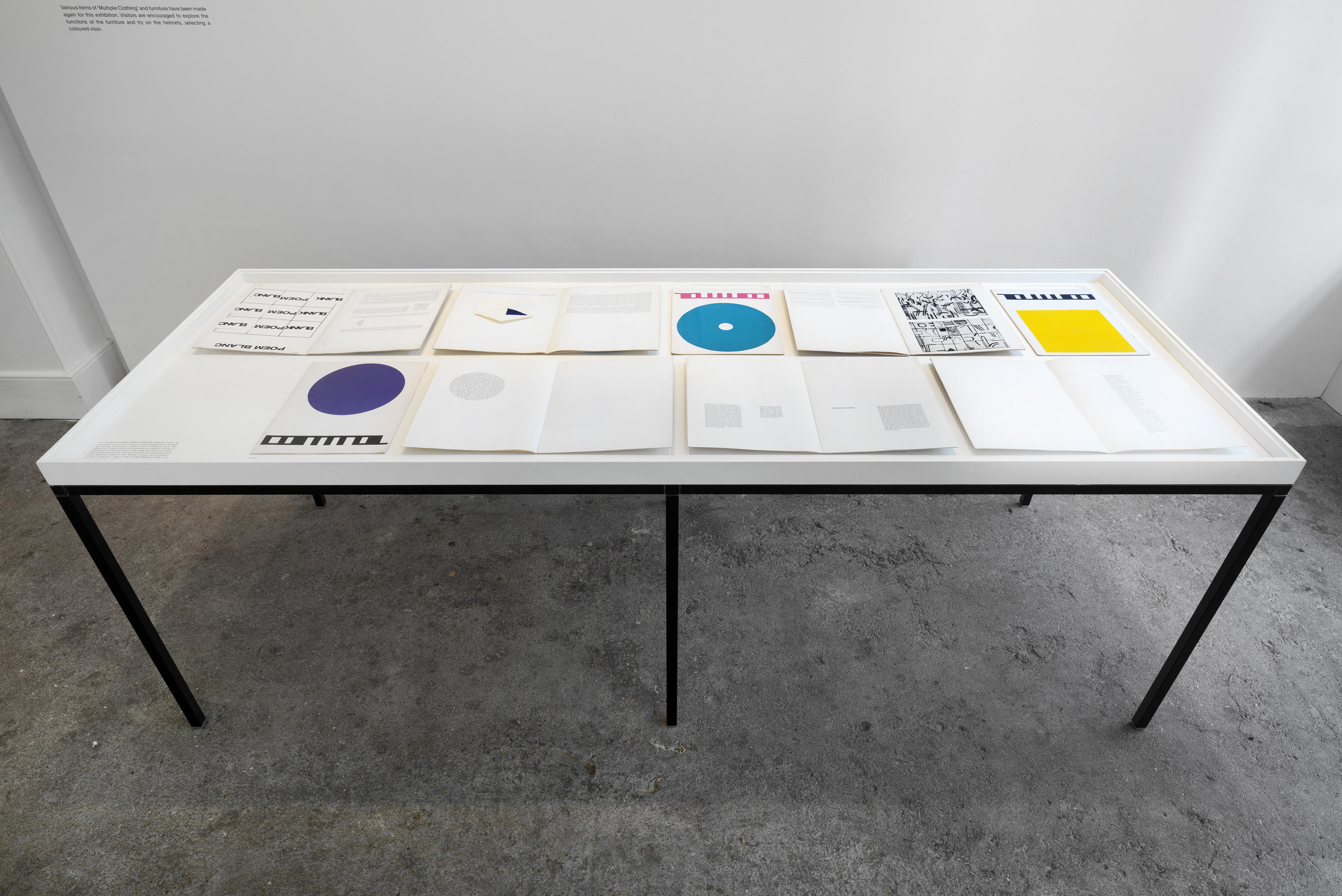 As well as the clothing and furniture made in 1965 when he briefly described himself as a 'conceptual designer', Willats' earliest sculptural series of 'Manual Variables' is haptic and interactive. These are shown alongside early issues of Control, the still-operating magazine he founded in the same period. Its title is a provocation, invoking the cybernetic idea that people can take control of their environments, thereby deflecting the controls of a dominant hierarchy.