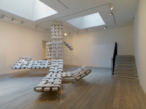 In an essay to accompany the exhibition, writer and critic Lars Bang Larsen considers the philosophy of the elastic, and elaborates on the role of motion, vibration and nervous energy in these works and the wider culture.