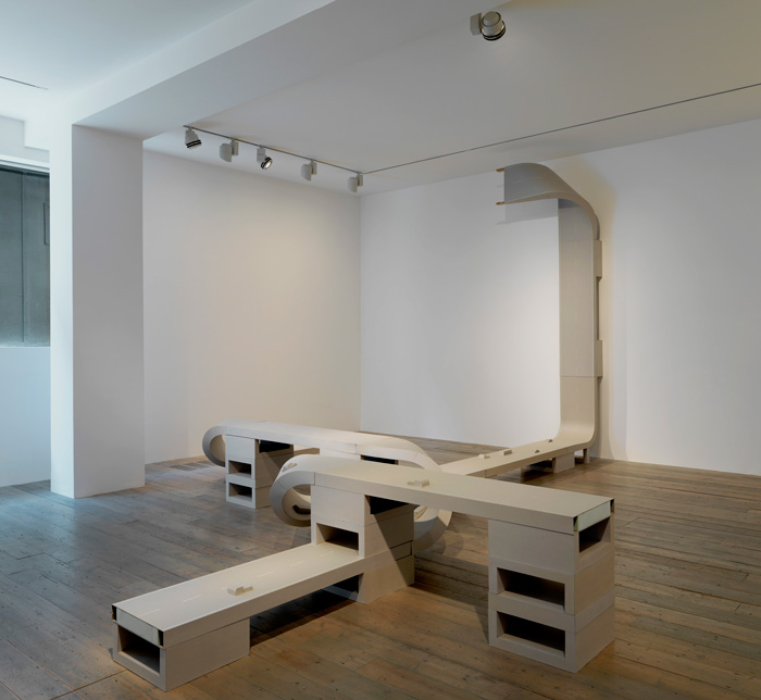Thomas Bayrle (born 1937, living in Frankfurt) has been working since the mid-sixties and is now recognized as key to a European kind of Pop Art. In Bayrle’s work, single units are replicated and stretched into a mass, describing a world suspended between positive collectivism and deadening uniformity. His sculptural works and the film Autobahn-Kopf in the ground floor galleries use the metaphor of the highway to characterise a state of modernity where we are ‘racing to stand still’.