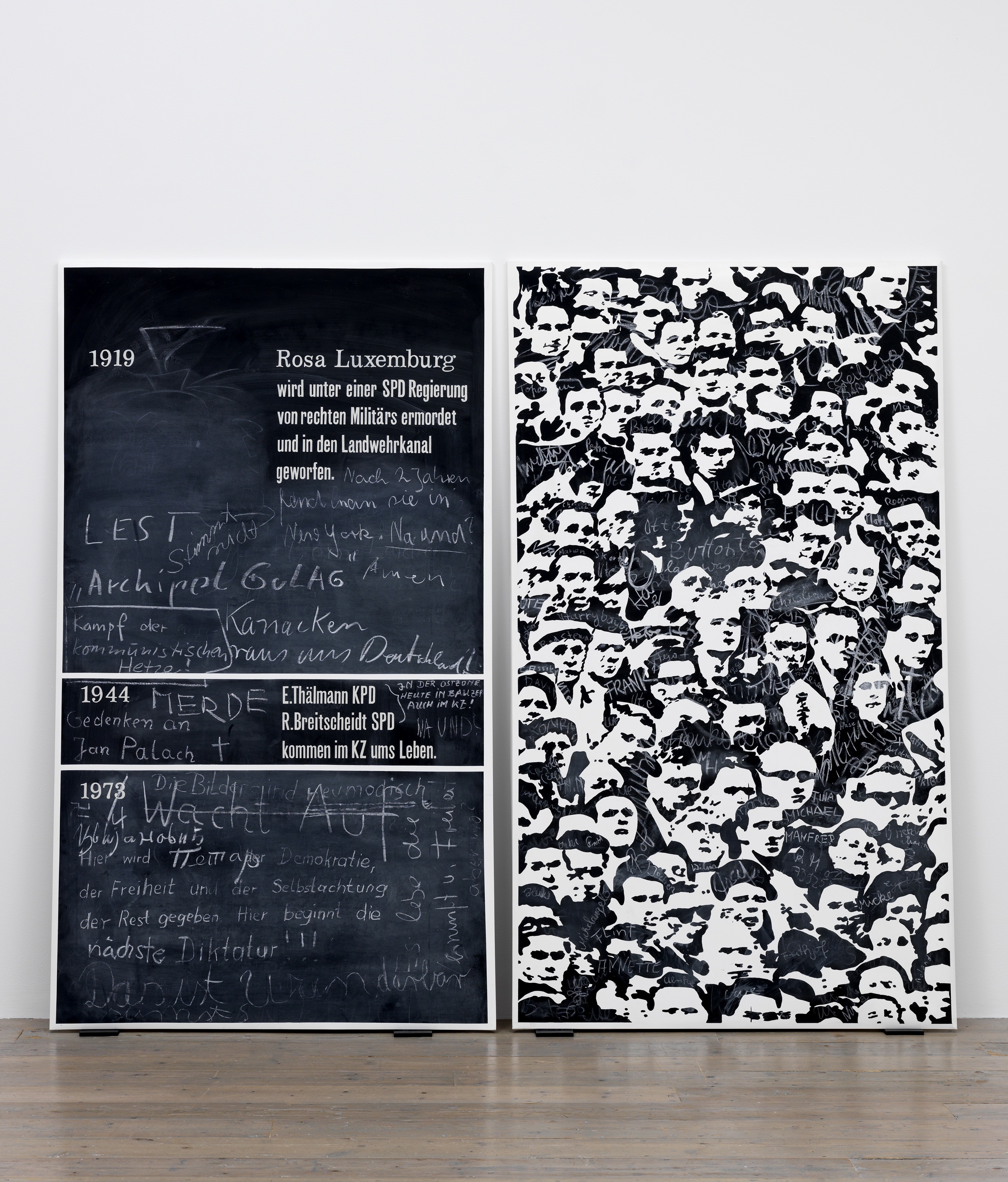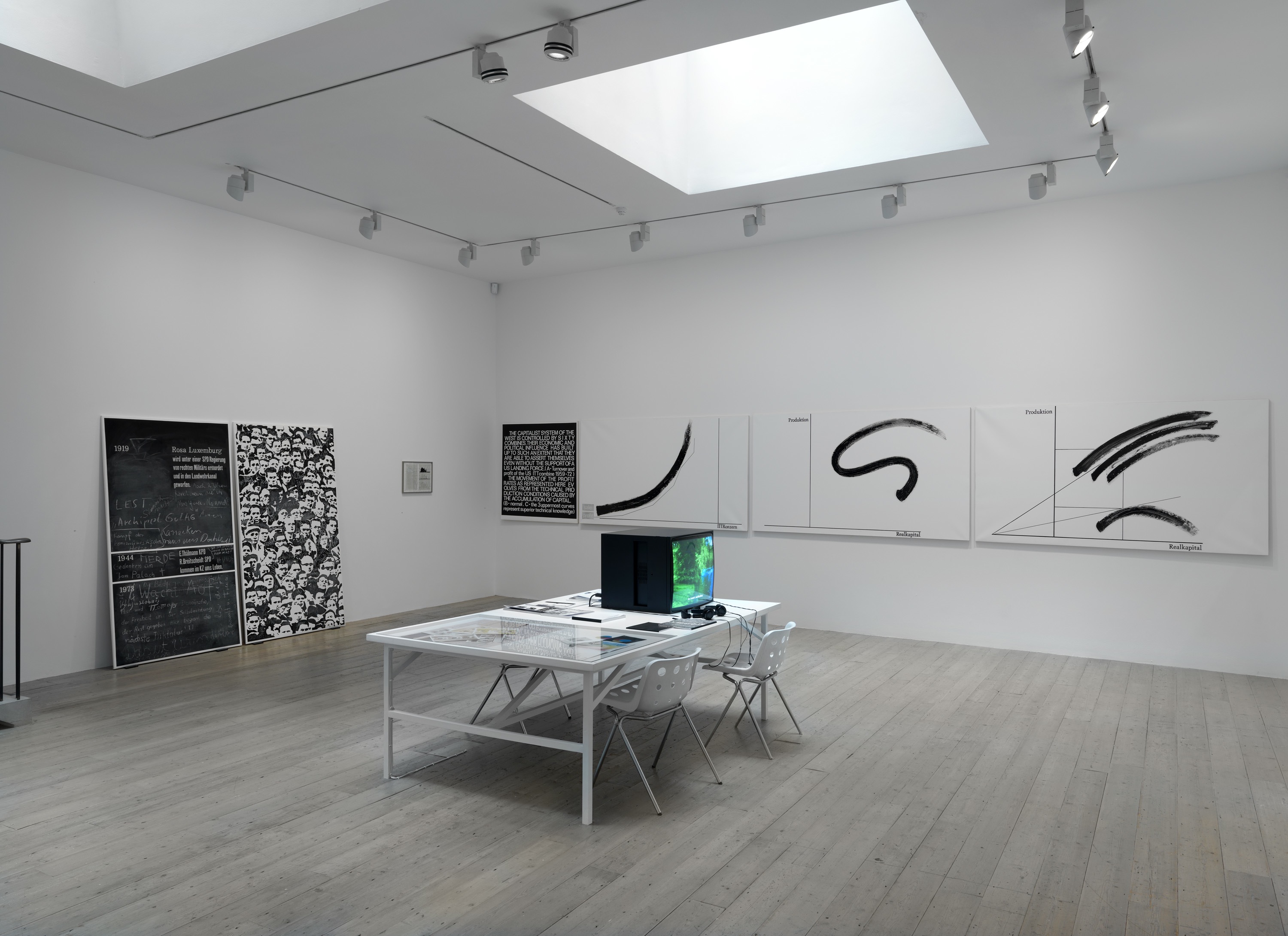 The earliest works in the exhibition are associated with Capitalist Realism, often conflated with Pop Art, which artists including Brehmer, Konrad Lueg, Sigmar Polke and Gerhard Richter developed through René Block's gallery in Berlin between 1964 and 1971.