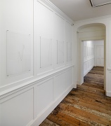 For this exhibition Mathias Poledna (b. Austria, 1965) and Florian Pumhösl (b. Austria, 1971) have each created a single expansive new work. Poledna has produced a 35 mm film for Raven Row’s ground floor, and Pumhösl has made a series of 54 glass paintings for its panelled upper galleries. The interaction between these works and their spatial implementation plays a key role in the exhibition, addressing Raven Row’s distinct architecture, and the potential for dialogue across different conceptual frameworks.